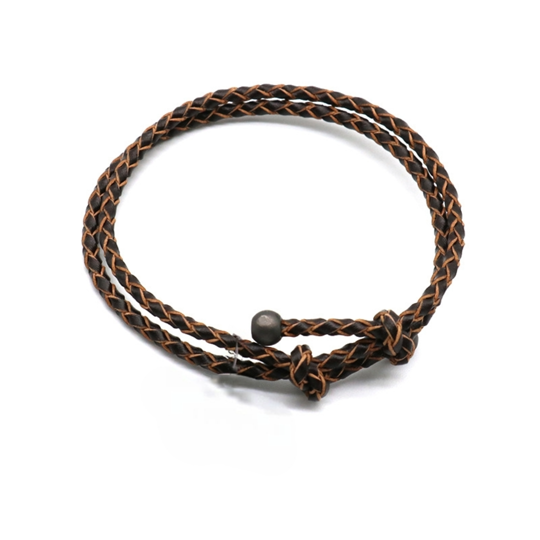 Men's Woven Full Grain Leather Bracelet in Black and Dark Brown
