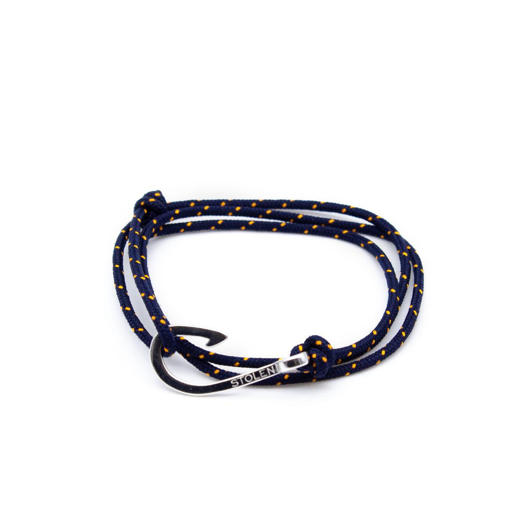 Wrap-Around Marine Rope Bracelet - Navy and Orange with Silver-Tone Fishhook