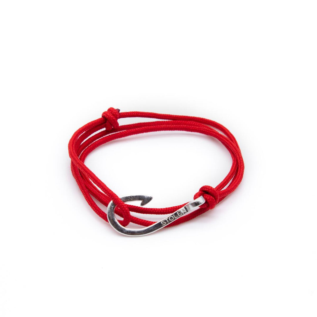 Wrap-Around Marine Rope Bracelet - Red with Silver-Tone Fishhook