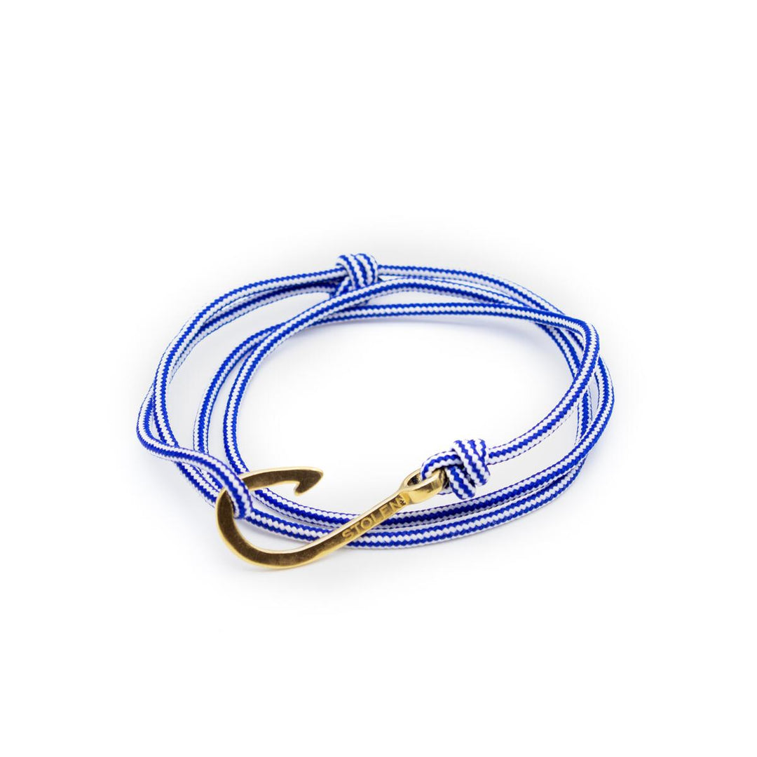 Wrap-Around Marine Rope Bracelet - Blue & White with Gold-Tone Fishhook