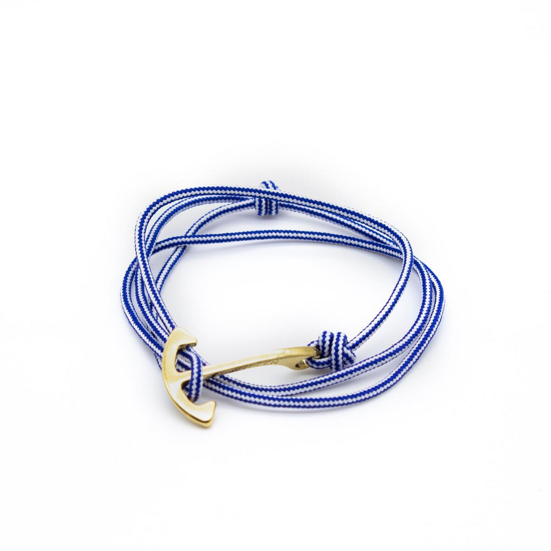 Wrap-Around Marine Rope Bracelet - Blue & White with Gold-Tone Anchor