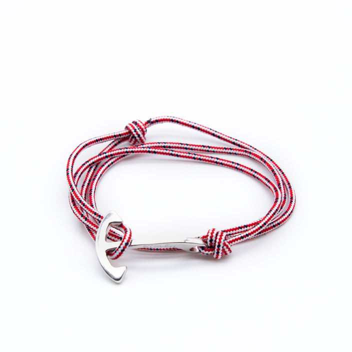 Wrap-Around Marine Rope Bracelet - Red, White, & Blue with Silver-Tone Anchor
