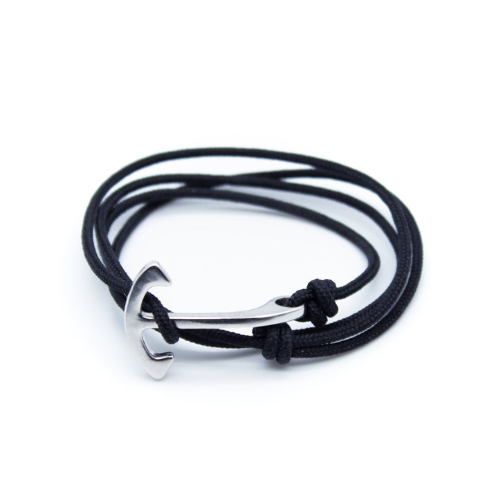 Wrap-Around Marine Rope Bracelet - Black with Silver-Tone Anchor