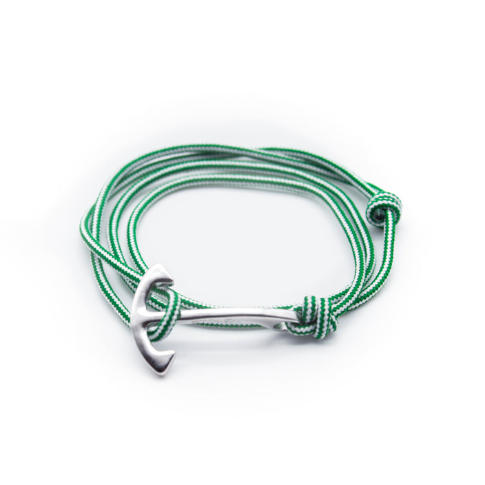 Wrap-Around Marine Rope Bracelet - Green & White with Silver-Tone Anchor