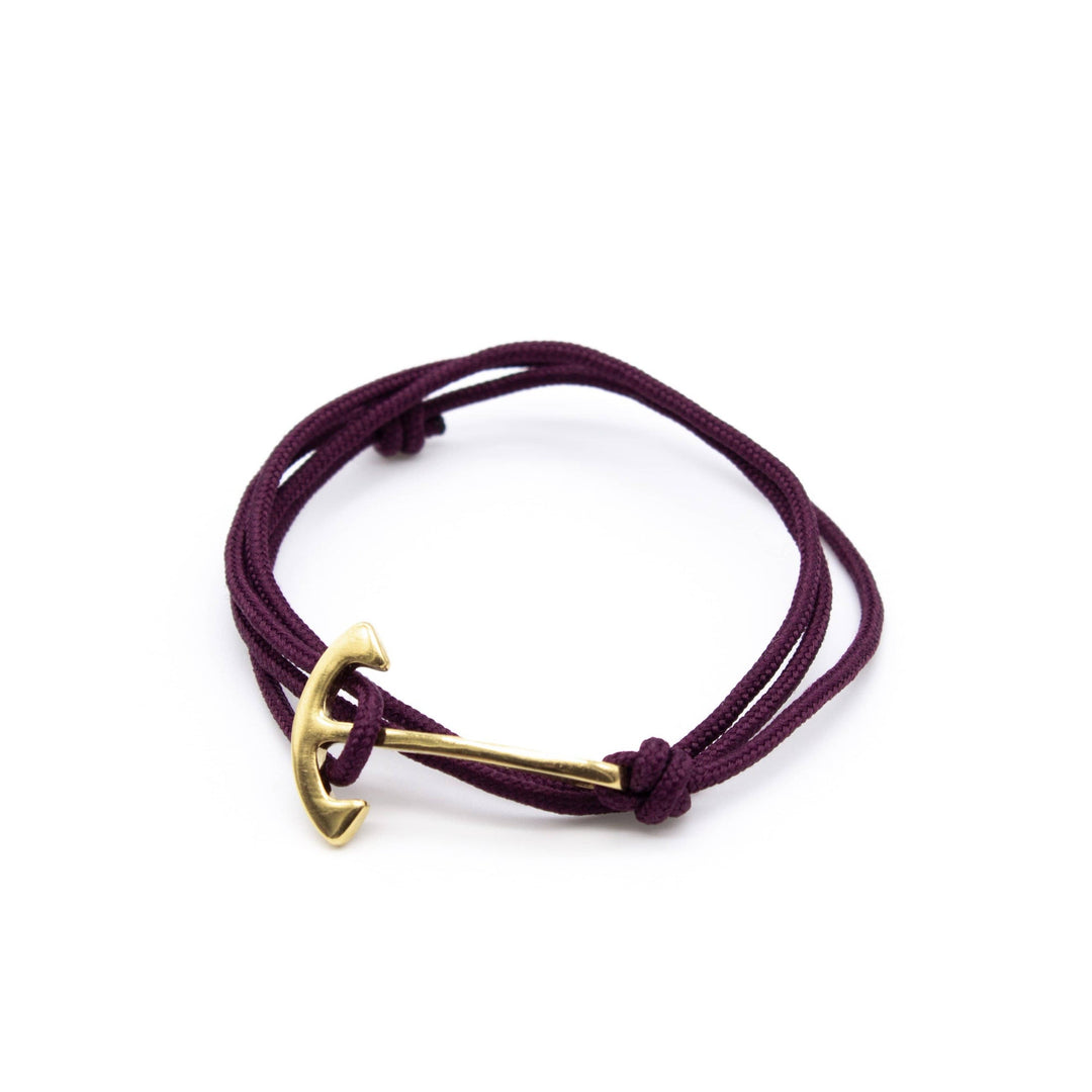 Wrap-Around Marine Rope Bracelet - Maroon with Gold-Tone Anchor