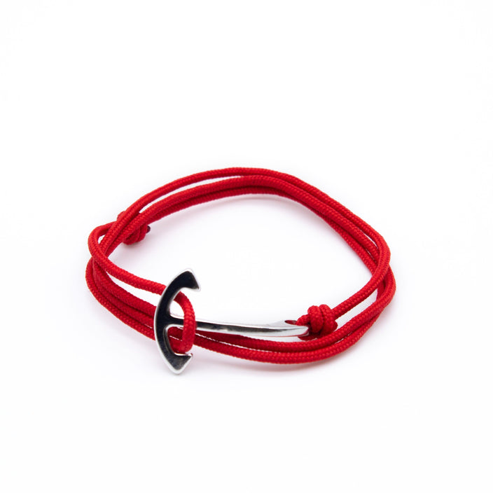 Wrap-Around Marine Rope Bracelet - Red with Silver-Tone Anchor