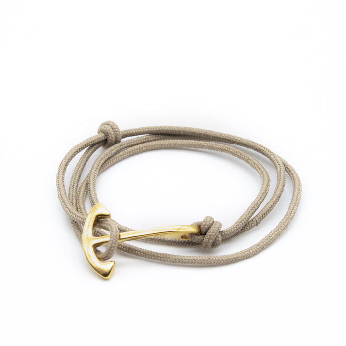 Wrap-Around Marine Rope Bracelet - Beige with Gold-Tone Anchor