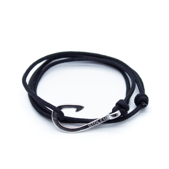 Wrap-Around Marine Rope Bracelet - Black with Silver-Tone Fishhook