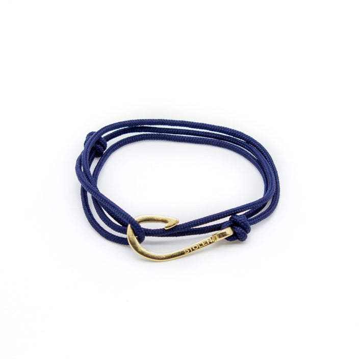 Wrap-Around Marine Rope Bracelet - Mission Blue with Gold-Tone Fishhook
