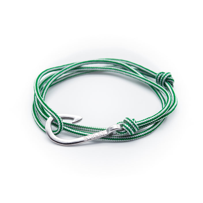 Wrap-Around Marine Rope Bracelet - Green & White with Silver-Tone Fishhook