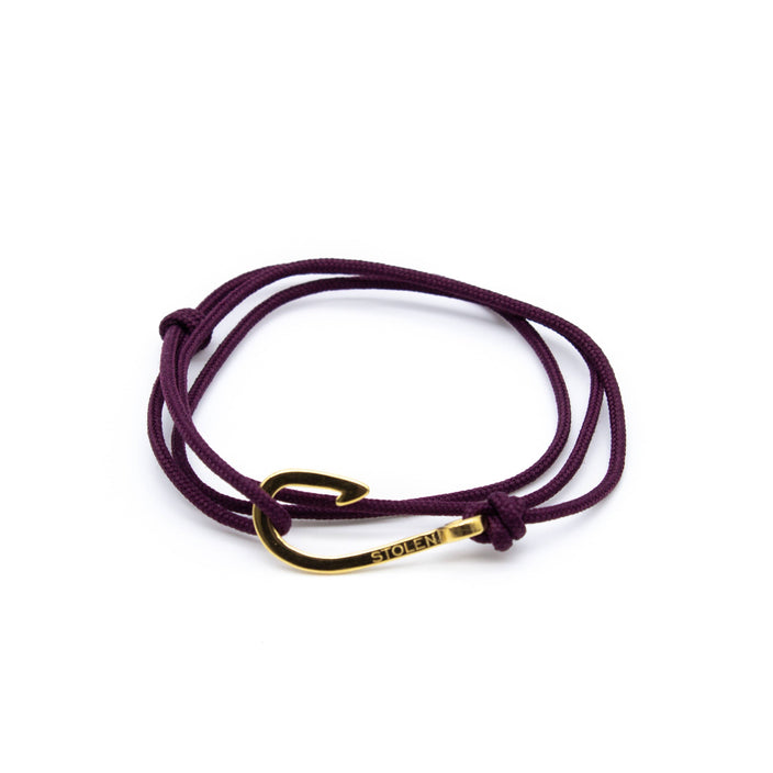 Wrap-Around Marine Rope Bracelet - Maroon with Gold-Tone Fishhook