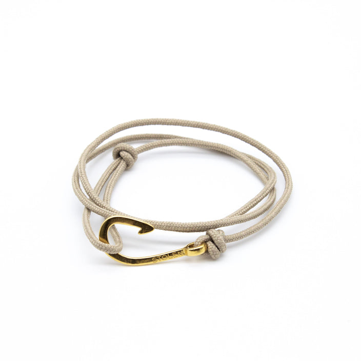 Wrap-Around Marine Rope Bracelet - Beige with Gold-Tone Fishhook