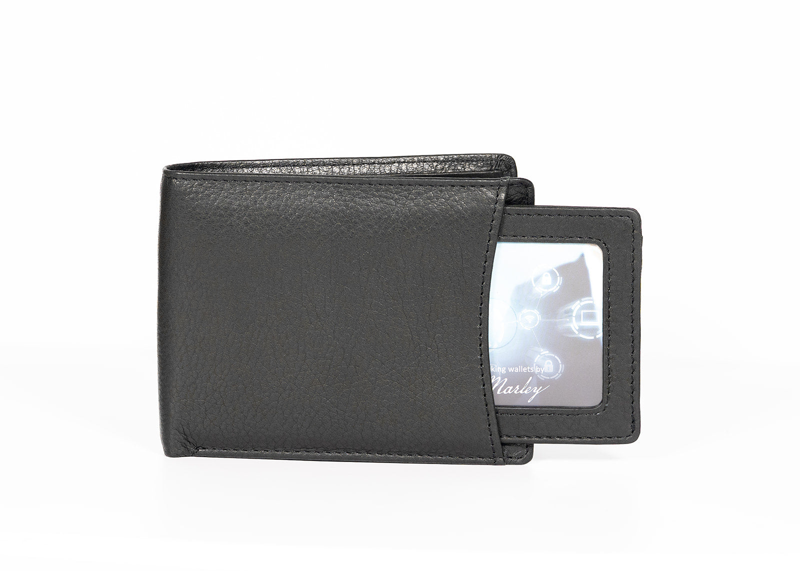 This wallet features a unique outside pocket with a removable pass case, which includes an ID window pocket, two card pockets, and a bill pocket. The wallet itself is designed with eight card slots and a divided bill compartment for enhanced organization. To ensure security, it is equipped with RFID lining to protect you from potential identity theft.
